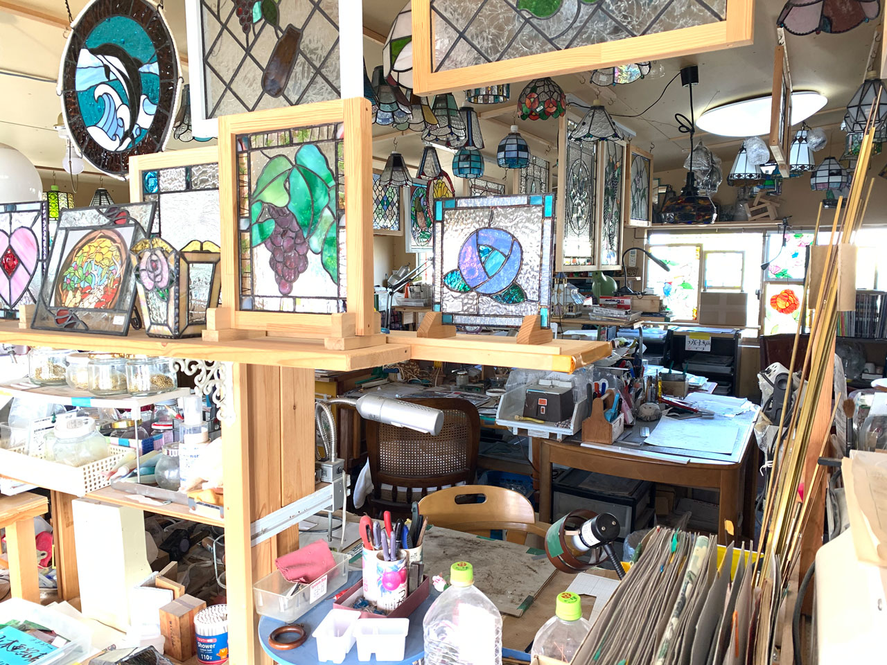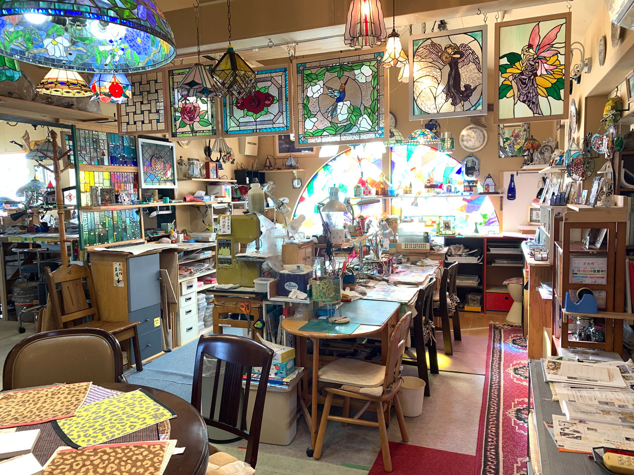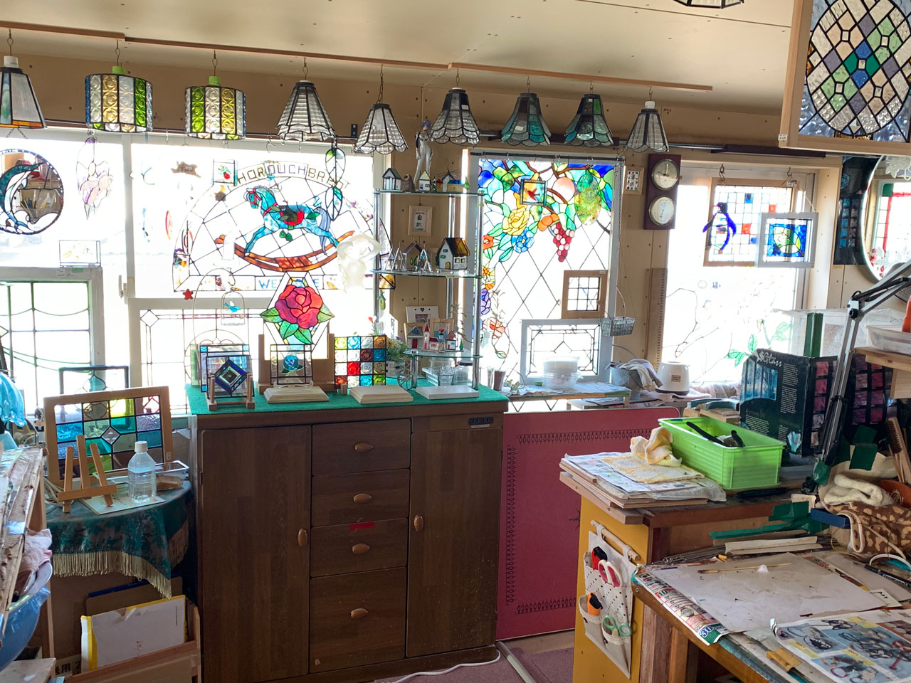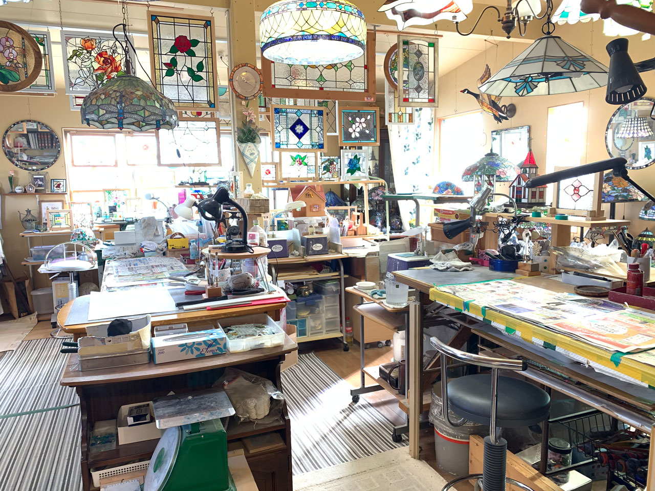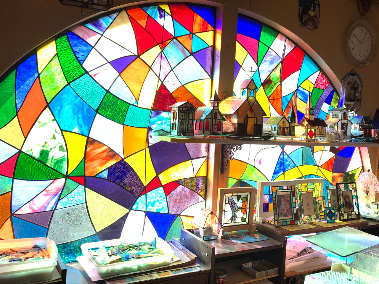 ステンドグラスで、今までとは違う光を、お部屋に取り込みませんか? ~華やかさを演出して、より満足できる空間造りに~ 愛媛県伊予郡松前町にある、オリエンス工房では、ステンドグラスを使った商品の制作販売やステンドグラス教室をしております。 店内の窓はステンドグラス。雑貨などもたくさん。 あなたもステンドグラスで華やかにコーディネイトしてみませんか? おうちの玄関やリビング、階段の窓枠、照明ランプ、雑貨など・・・